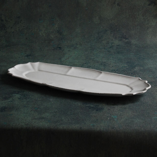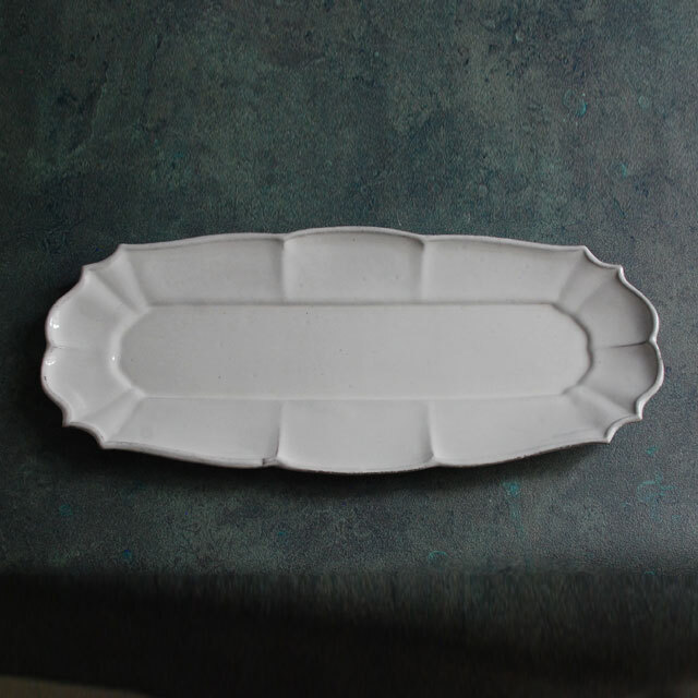 パリで採れる土。白い釉薬をかけその下に透ける様はこの土ならではの美しさです。