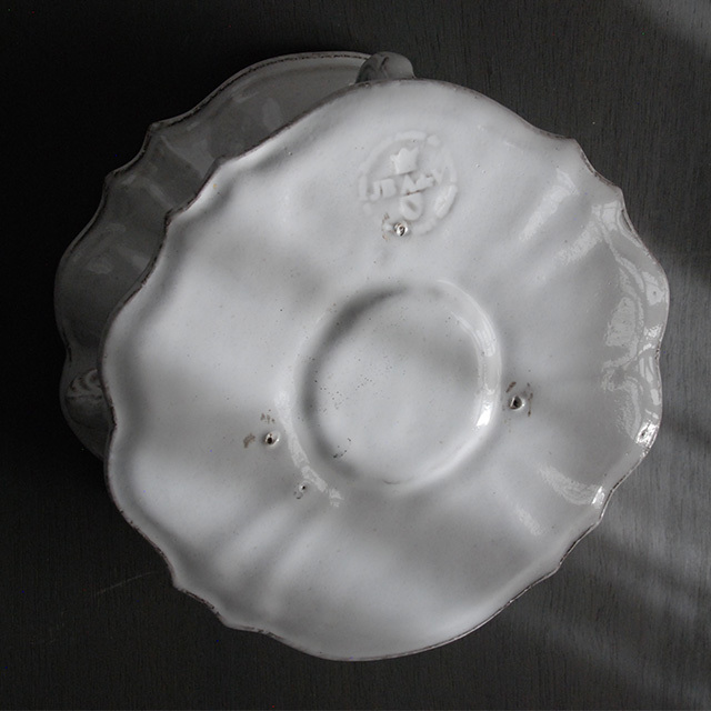 パリで採れる土。白い釉薬をかけその下に透ける様はこの土ならではの美しさです。