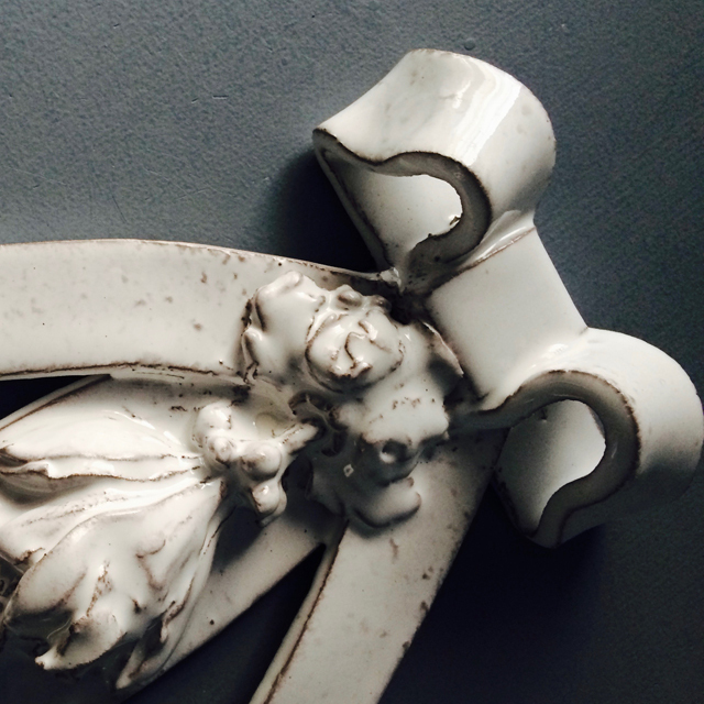パリで採れる土。白い釉薬をかけその下に透ける様はこの土ならではの美しさです。