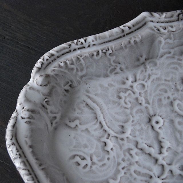 パリで採れる土。白い釉薬をかけその下に透ける様はこの土ならではの美しさです。