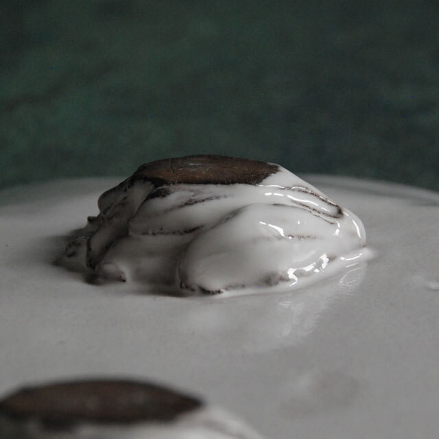 パリで採れる土。白い釉薬をかけその下に透ける様はこの土ならではの美しさです。
