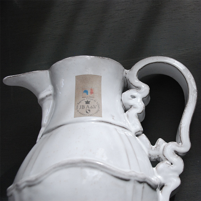 パリで採れる土。白い釉薬をかけその下に透ける様はこの土ならではの美しさです。