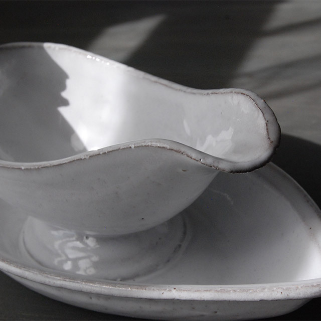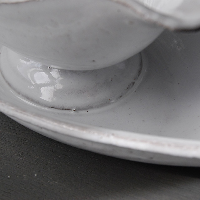 パリで採れる土。白い釉薬をかけその下に透ける様はこの土ならではの美しさです。