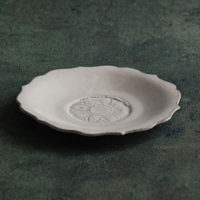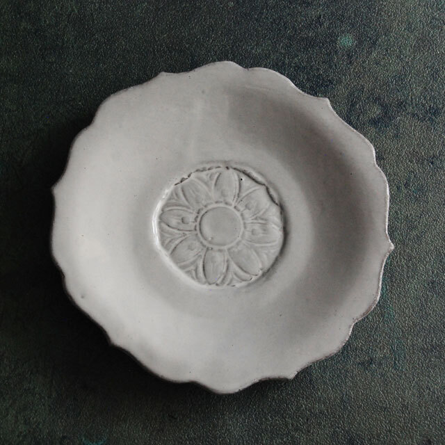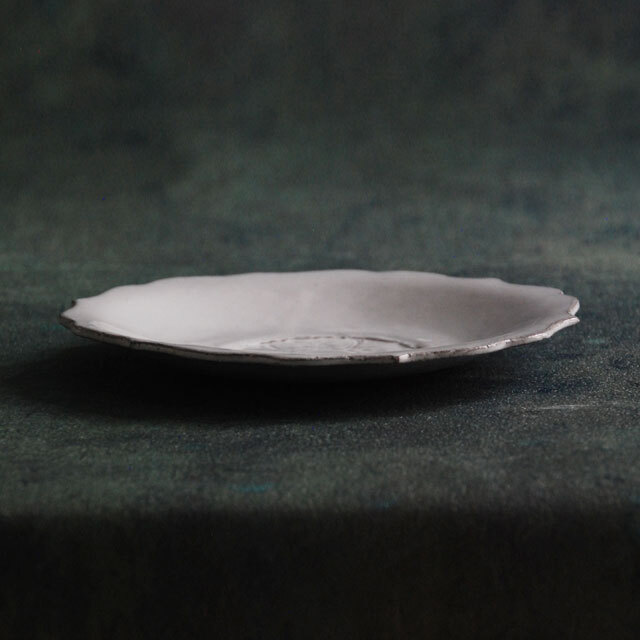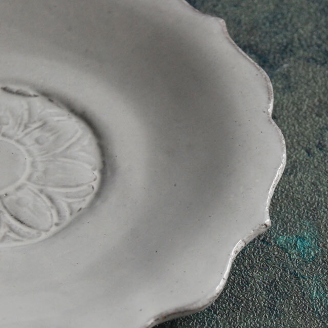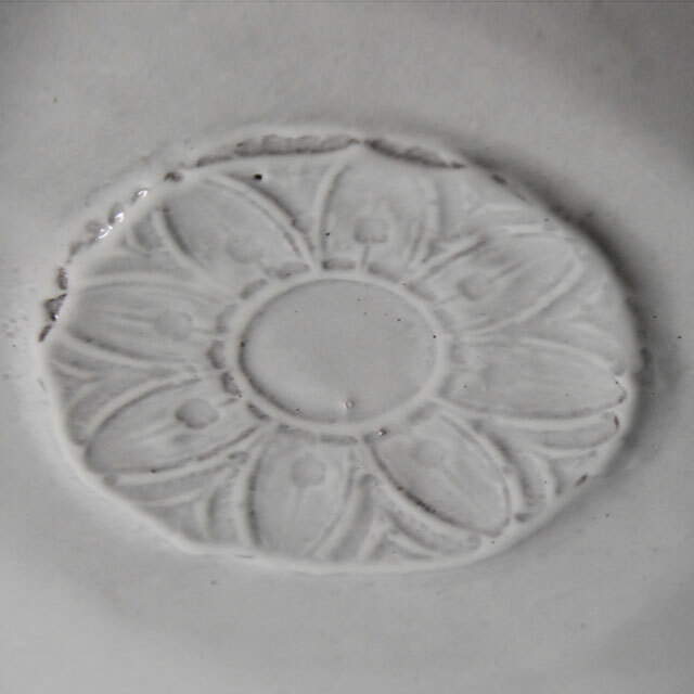 パリで採れる土。白い釉薬をかけその下に透ける様はこの土ならではの美しさです。