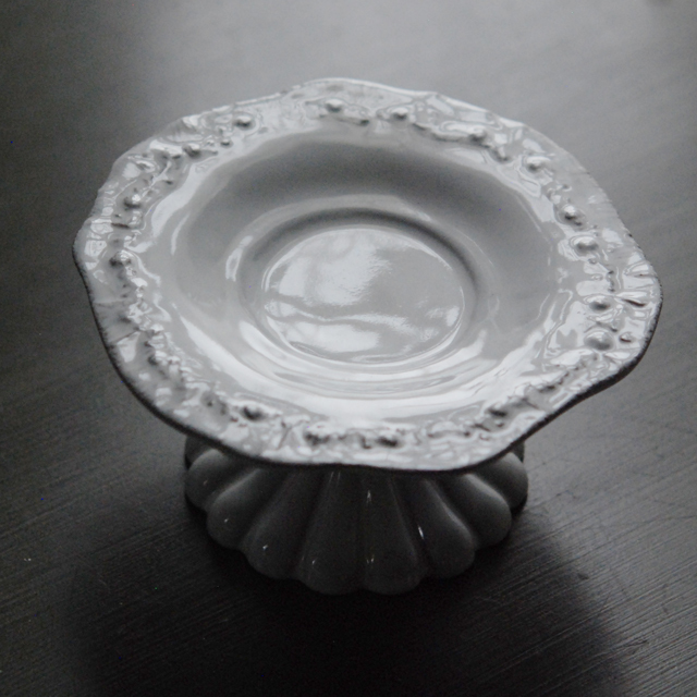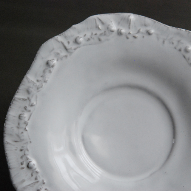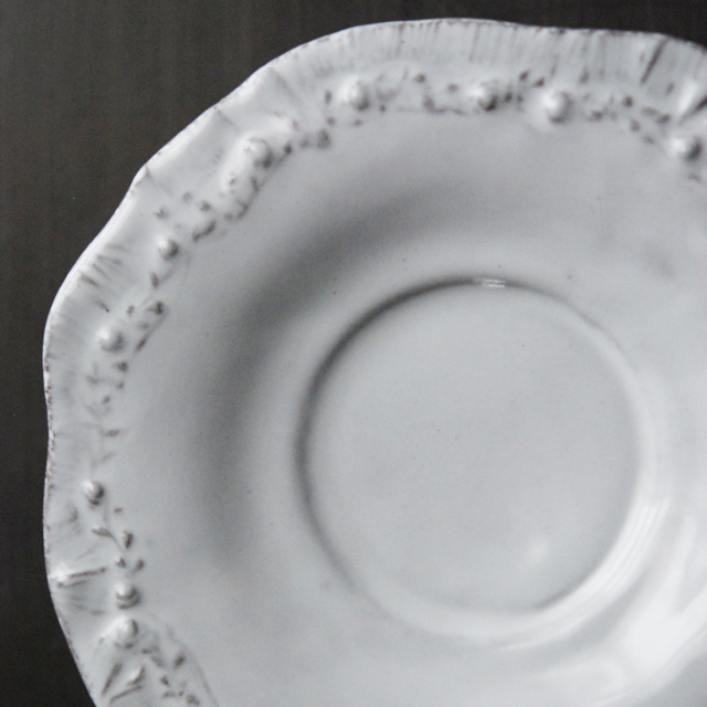 パリで採れる土。白い釉薬をかけその下に透ける様はこの土ならではの美しさです。