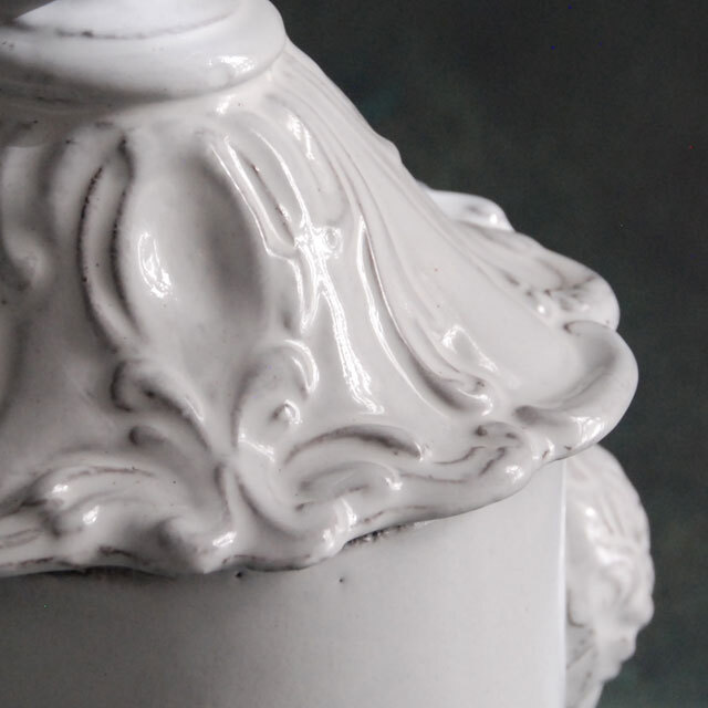 パリで採れる土。白い釉薬をかけその下に透ける様はこの土ならではの美しさです。