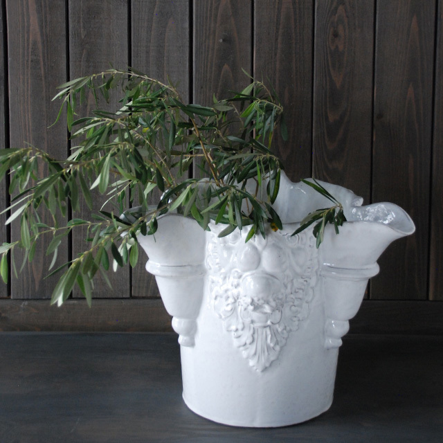 パリで採れる土。白い釉薬をかけその下に透ける様はこの土ならではの美しさです。