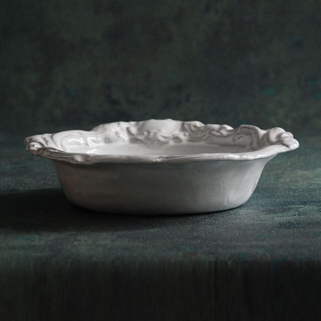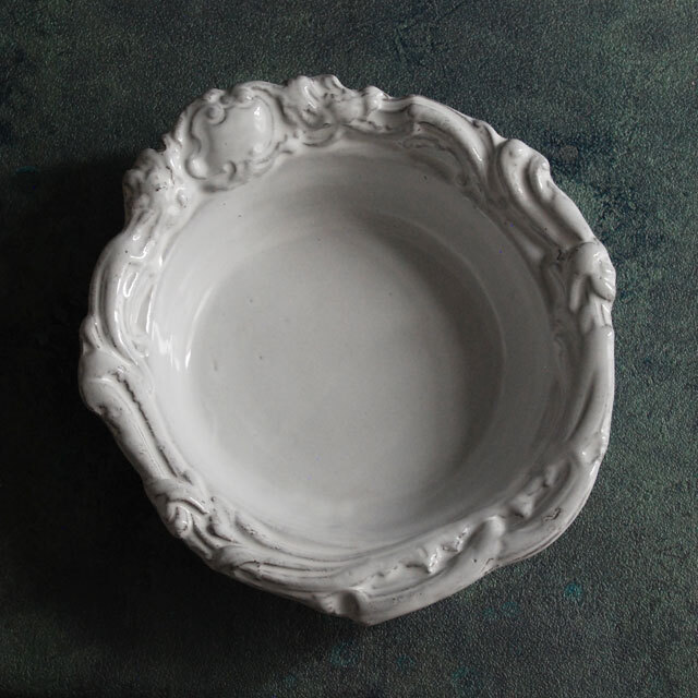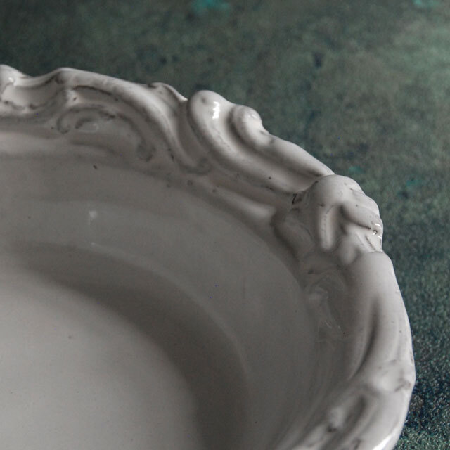 パリで採れる土。白い釉薬をかけその下に透ける様はこの土ならではの美しさです。