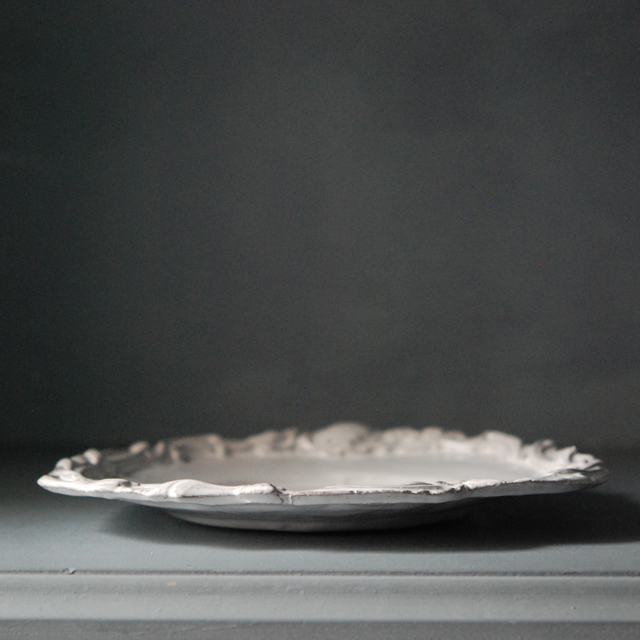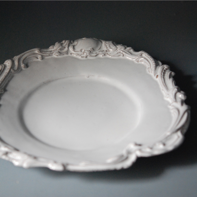 パリで採れる土。白い釉薬をかけその下に透ける様はこの土ならではの美しさです。