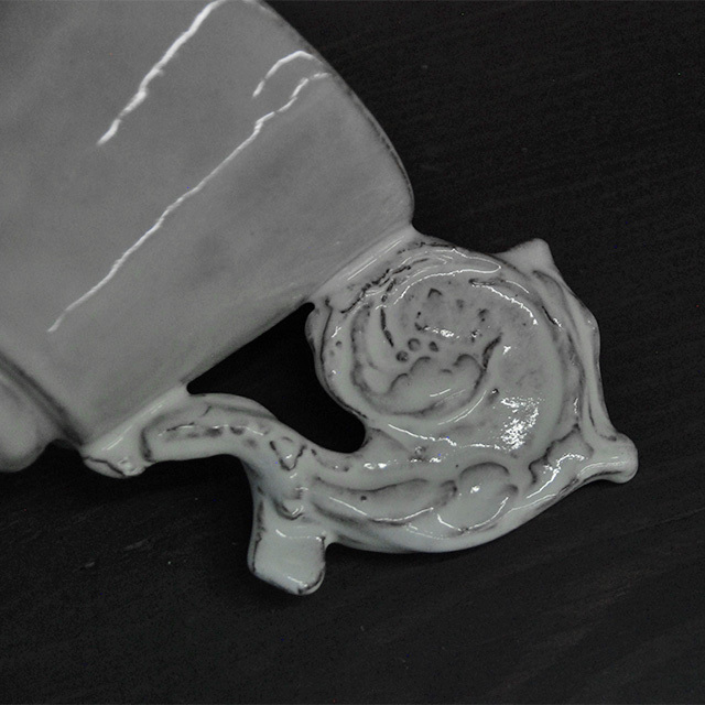 パリで採れる土。白い釉薬をかけその下に透ける様はこの土ならではの美しさです。