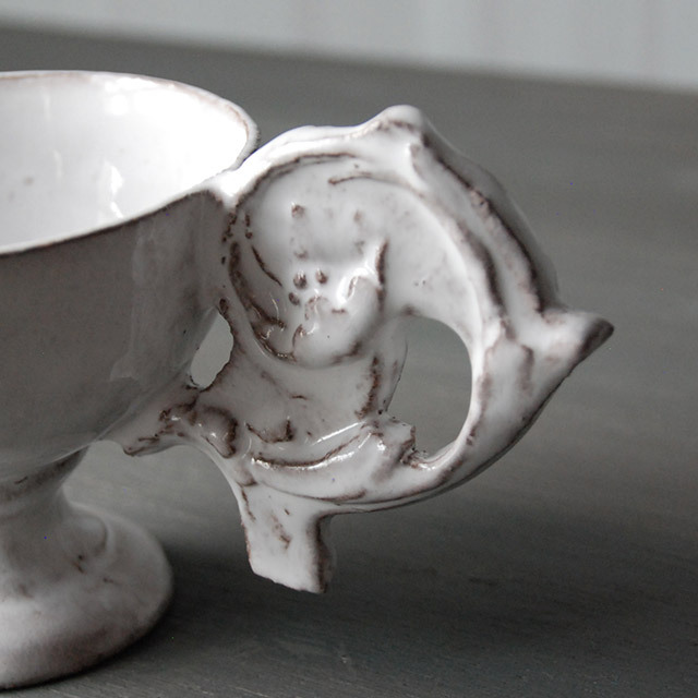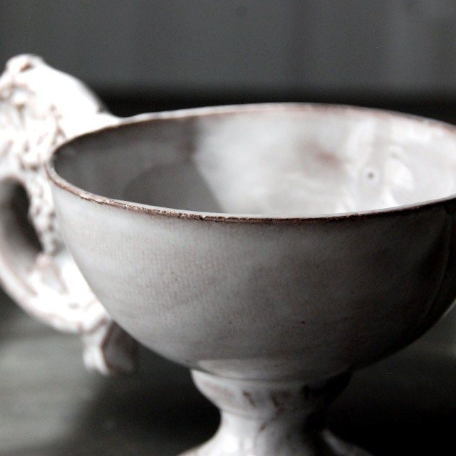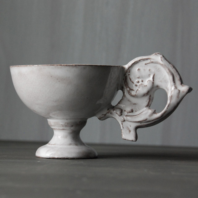 パリで採れる土。白い釉薬をかけその下に透ける様はこの土ならではの美しさです。