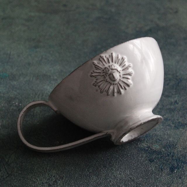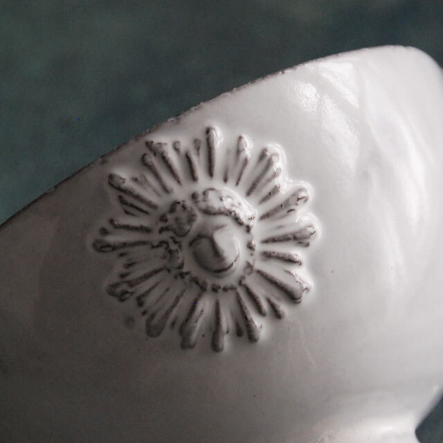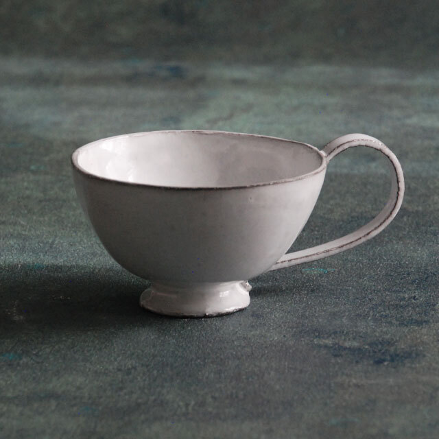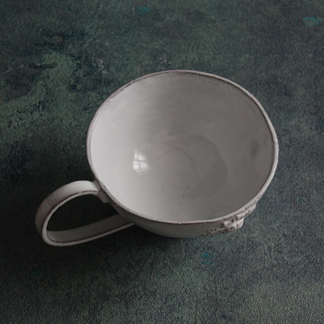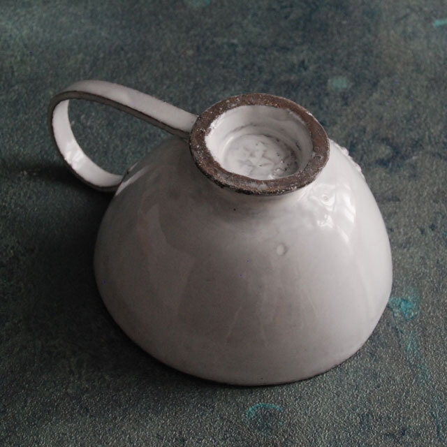 パリで採れる土。白い釉薬をかけその下に透ける様はこの土ならではの美しさです。