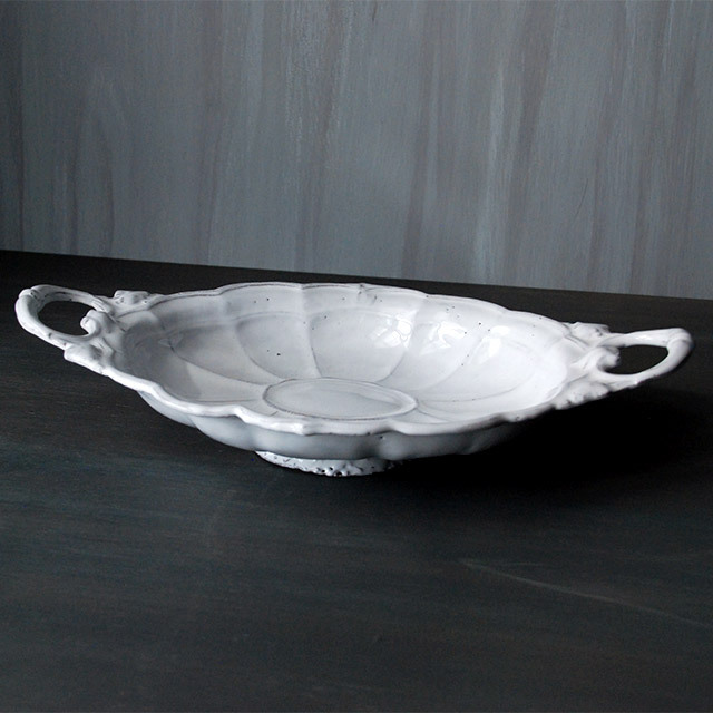 パリで採れる土。白い釉薬をかけその下に透ける様はこの土ならではの美しさです。