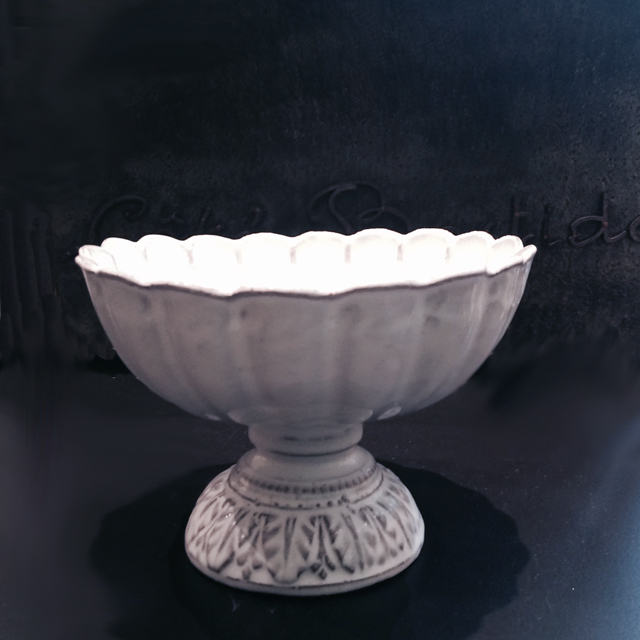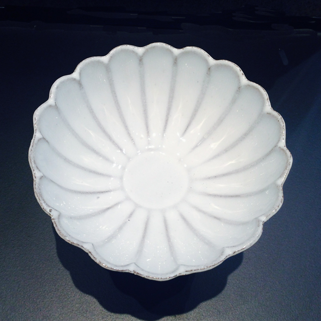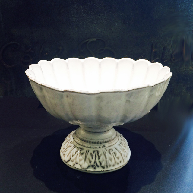 パリで採れる土。白い釉薬をかけその下に透ける様はこの土ならではの美しさです。