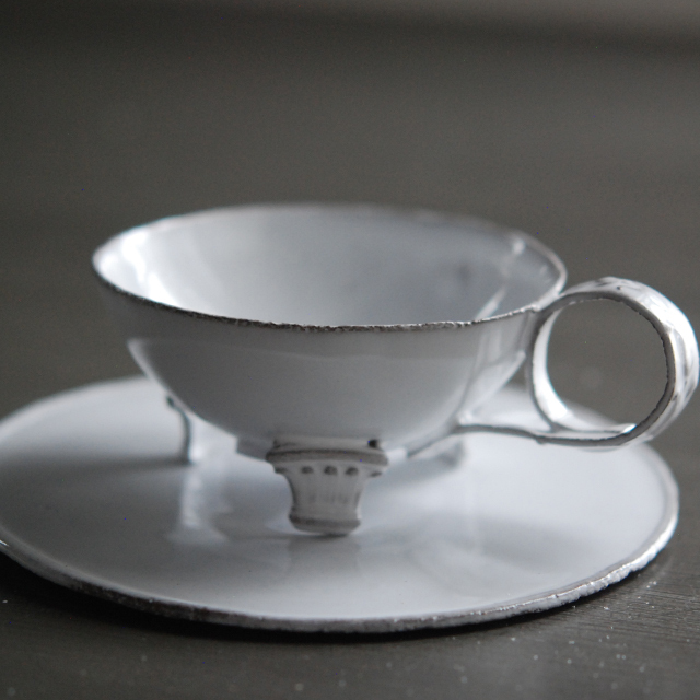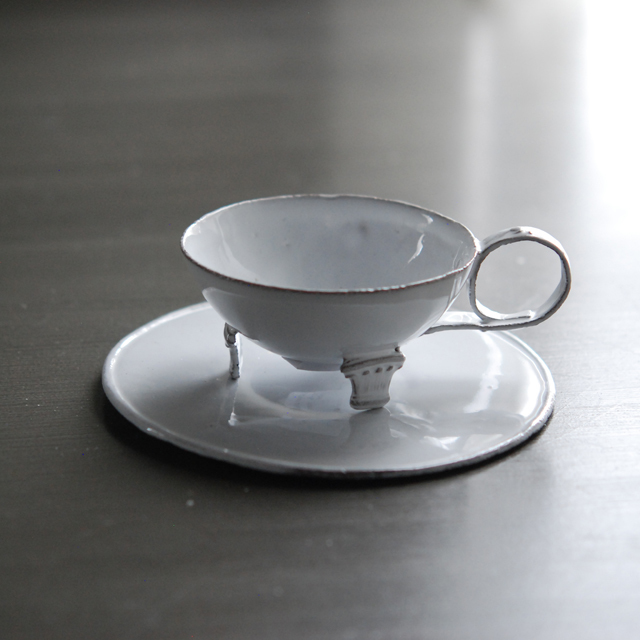 パリで採れる土。白い釉薬をかけその下に透ける様はこの土ならではの美しさです。