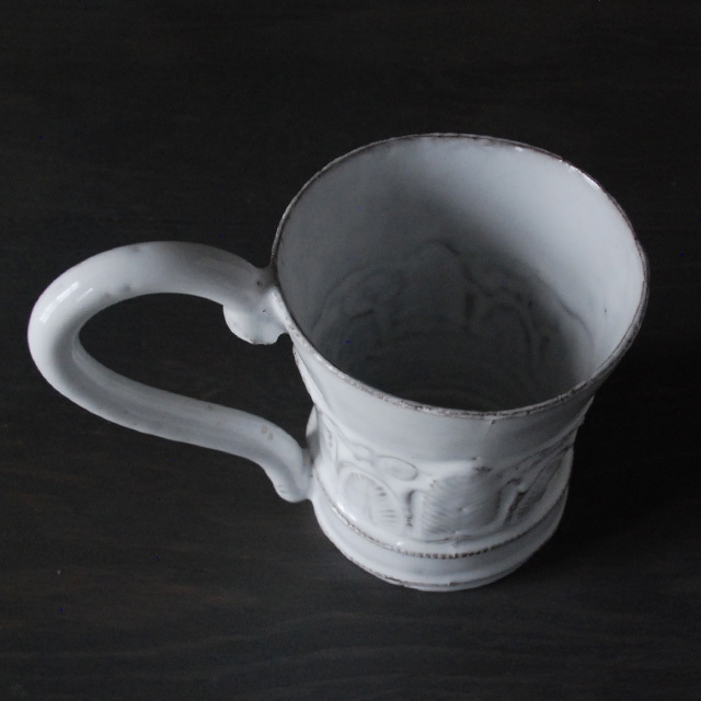 パリで採れる土。白い釉薬をかけその下に透ける様はこの土ならではの美しさです。