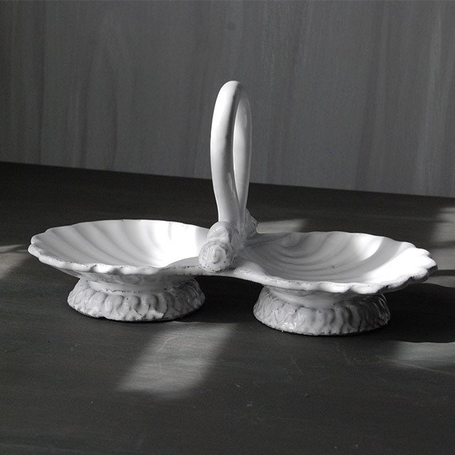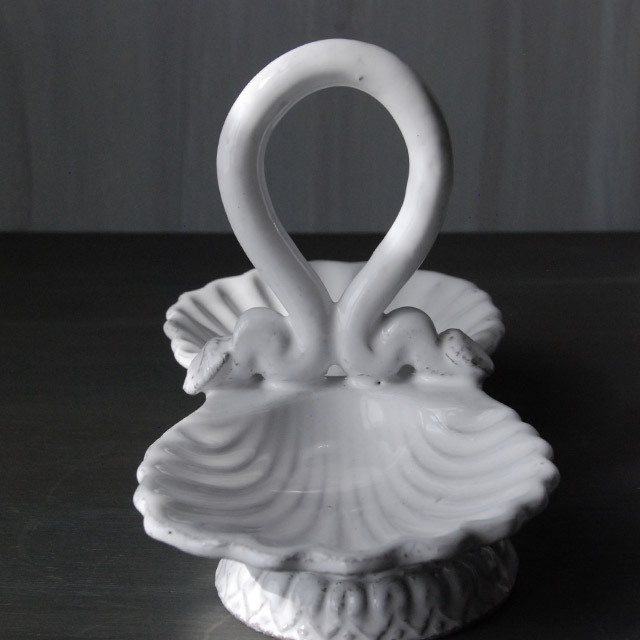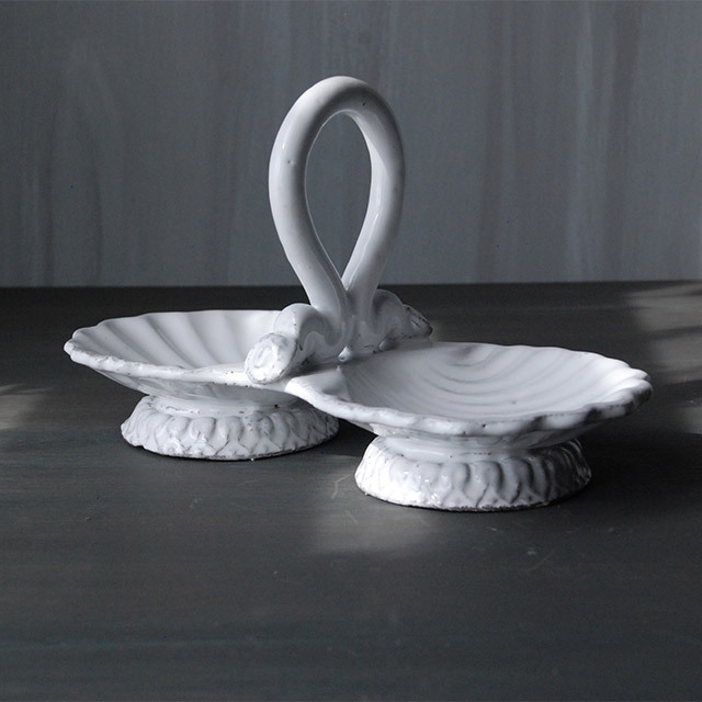 パリで採れる土。白い釉薬をかけその下に透ける様はこの土ならではの美しさです。