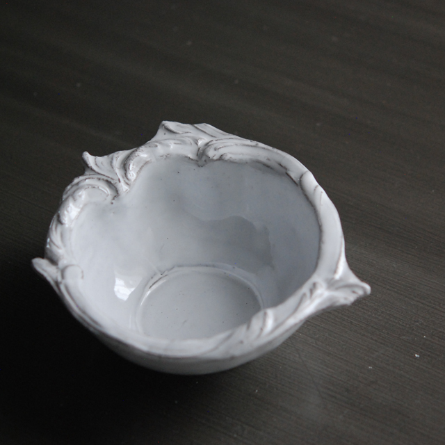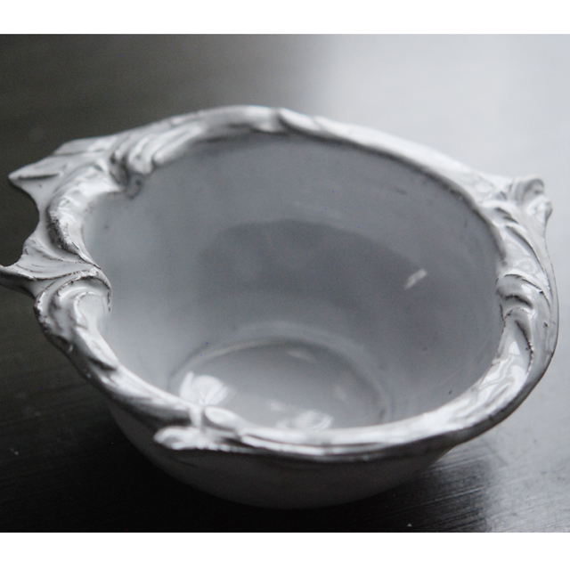 パリで採れる土。白い釉薬をかけその下に透ける様はこの土ならではの美しさです。