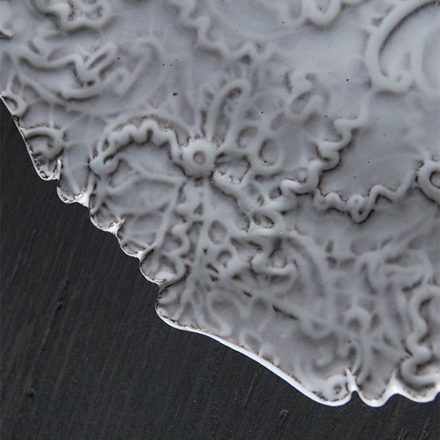 パリで採れる土。白い釉薬をかけその下に透ける様はこの土ならではの美しさです。