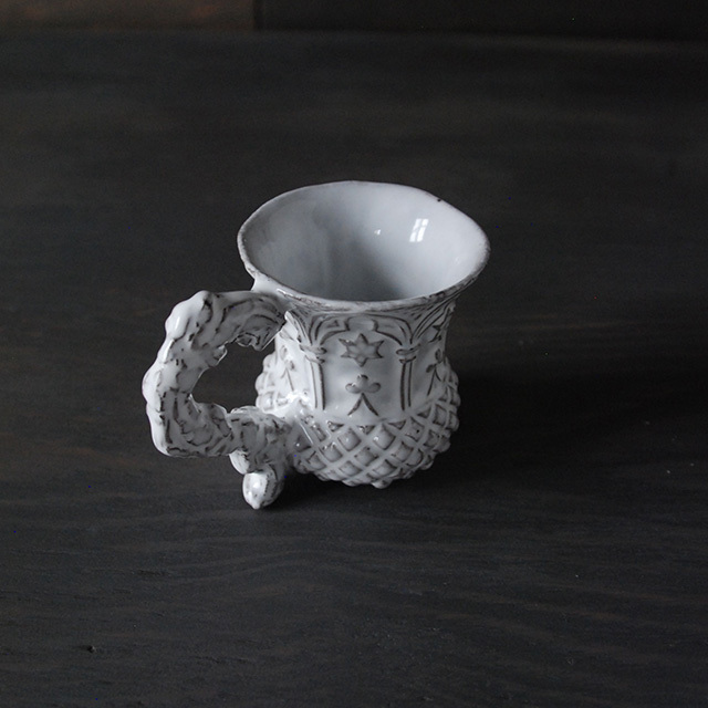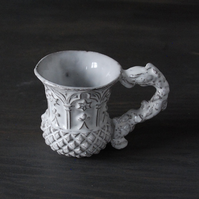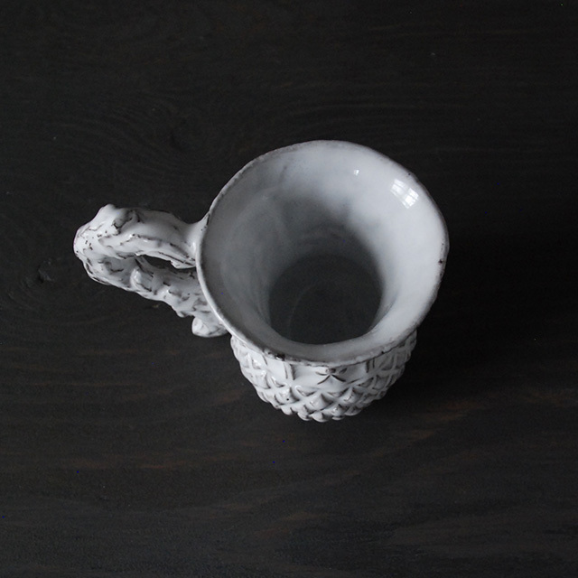 パリで採れる土。白い釉薬をかけその下に透ける様はこの土ならではの美しさです。