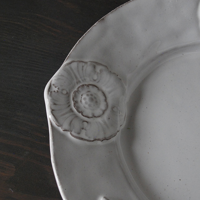 パリで採れる土。白い釉薬をかけその下に透ける様はこの土ならではの美しさです。