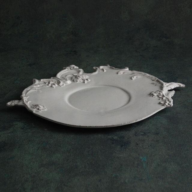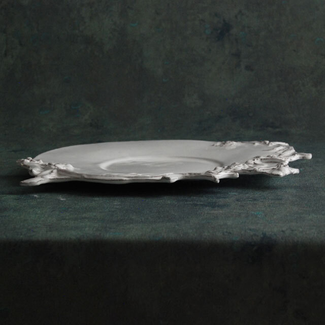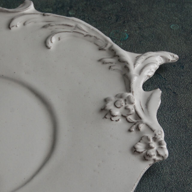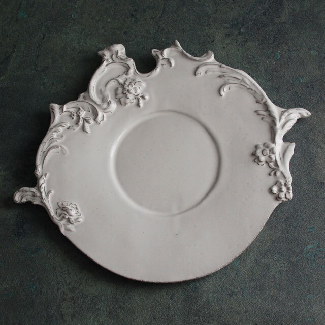 パリで採れる土。白い釉薬をかけその下に透ける様はこの土ならではの美しさです。