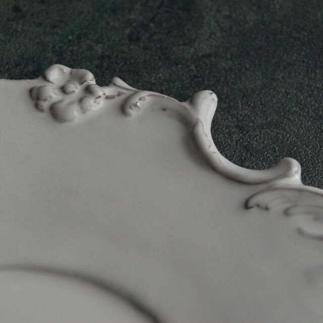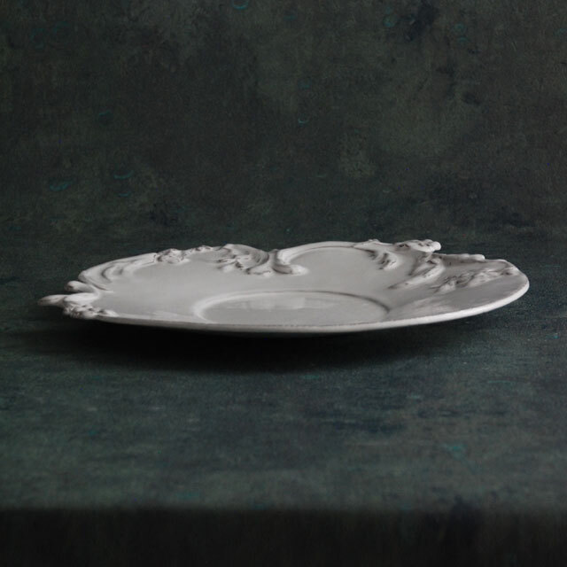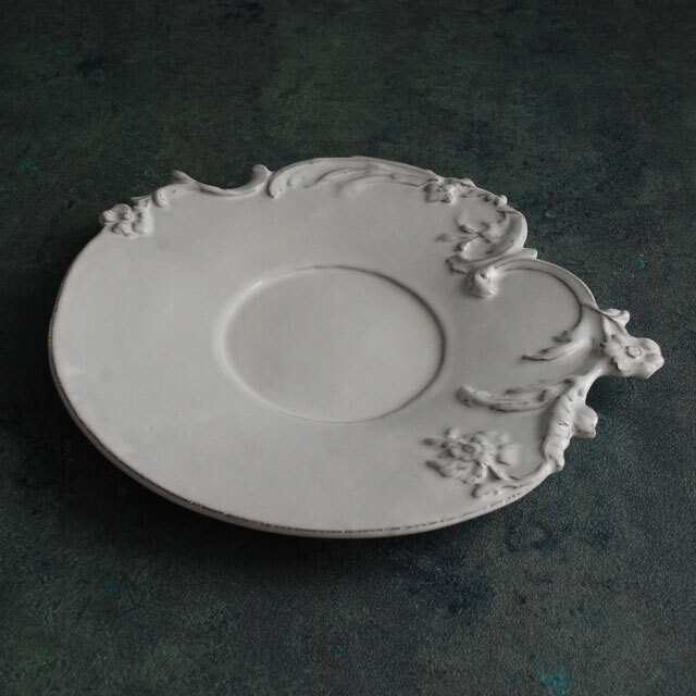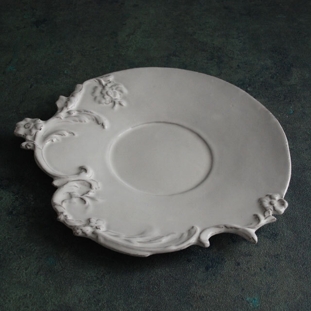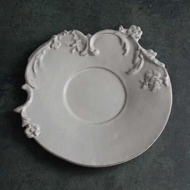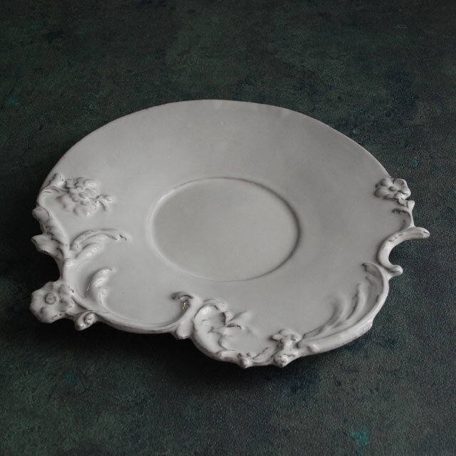 パリで採れる土。白い釉薬をかけその下に透ける様はこの土ならではの美しさです。