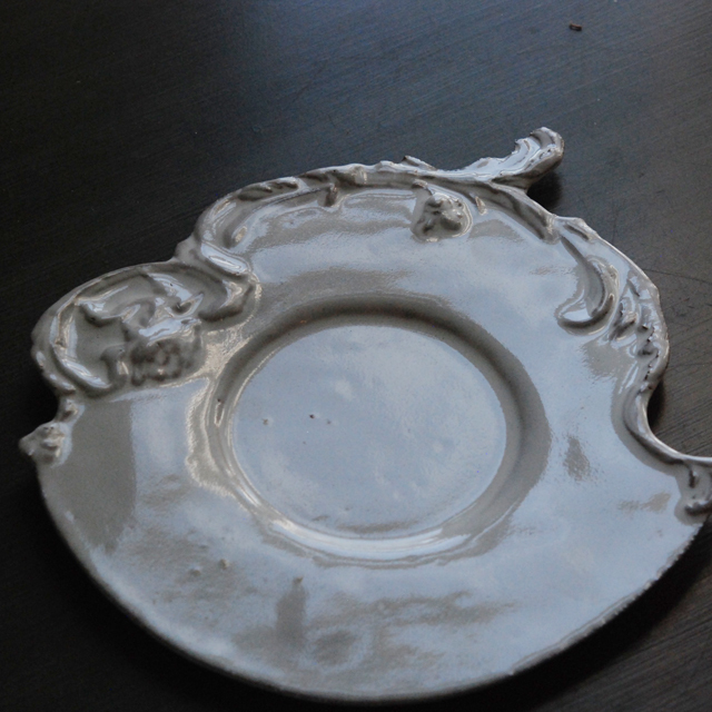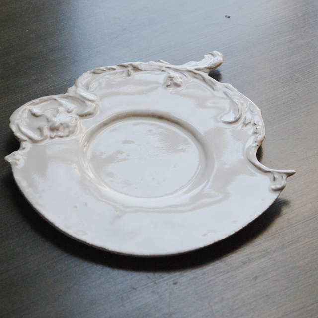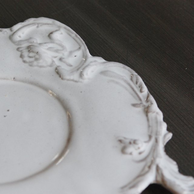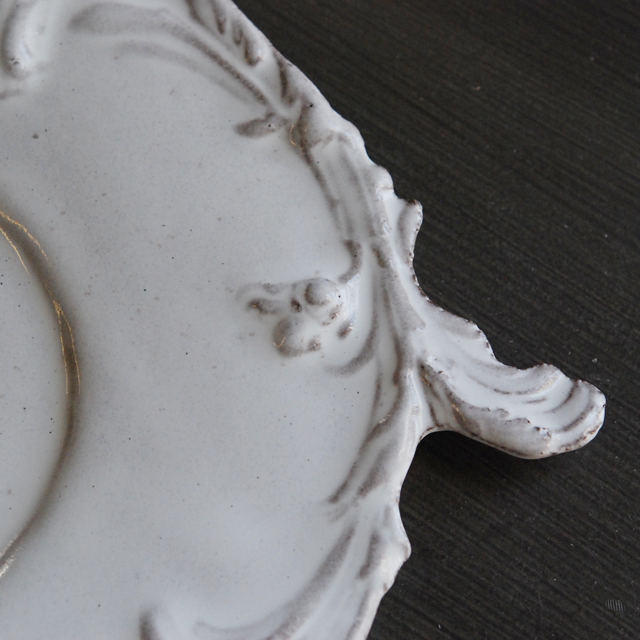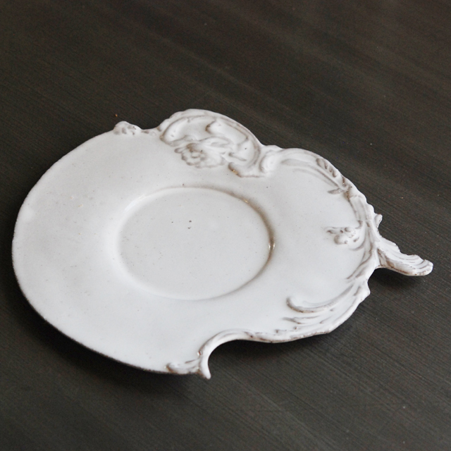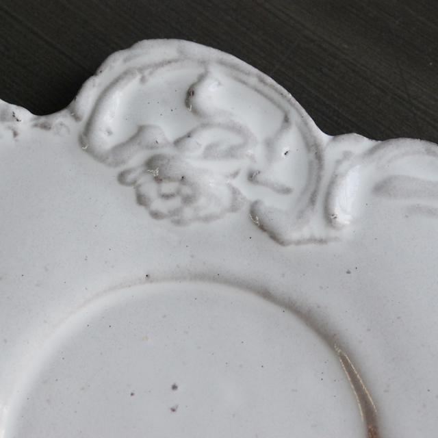 パリで採れる土。白い釉薬をかけその下に透ける様はこの土ならではの美しさです。