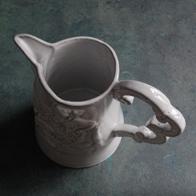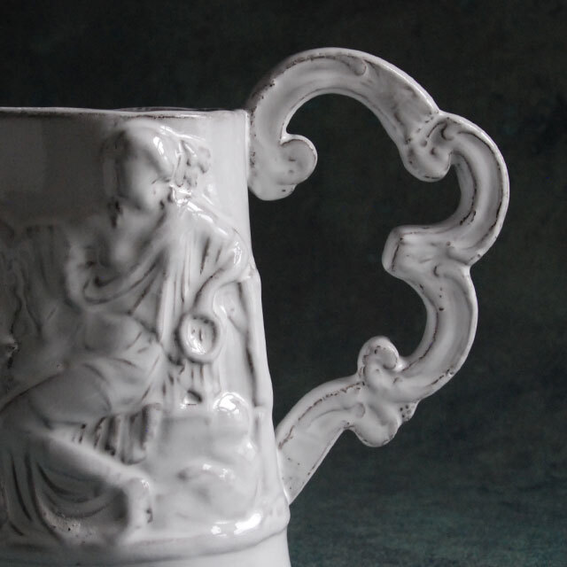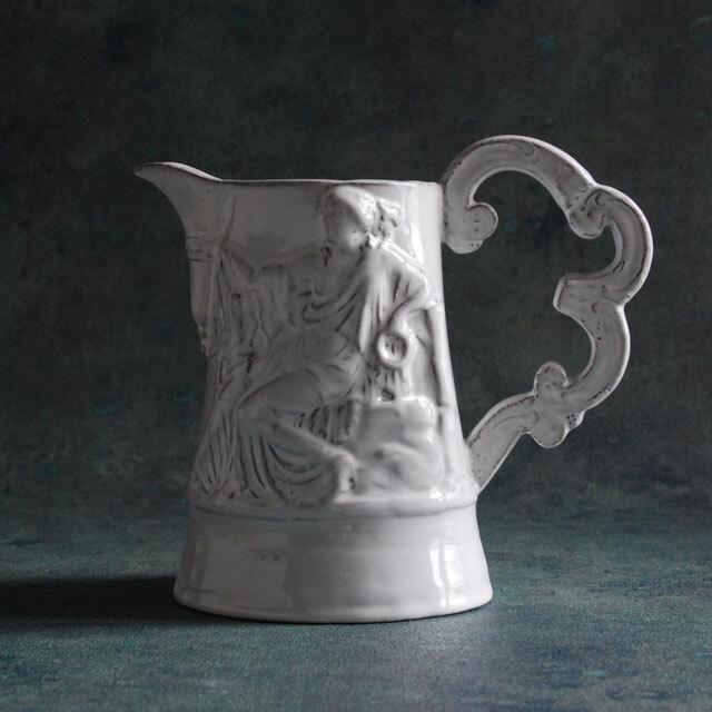 パリで採れる土。白い釉薬をかけその下に透ける様はこの土ならではの美しさです。