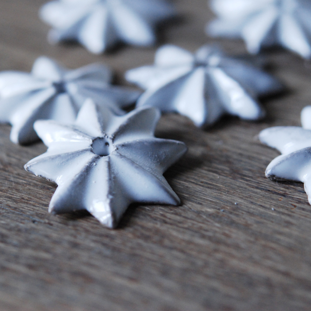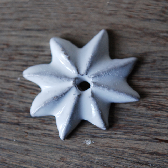 パリで採れる土。白い釉薬をかけその下に透ける様はこの土ならではの美しさです。