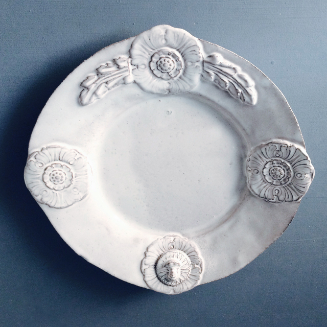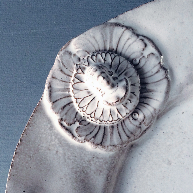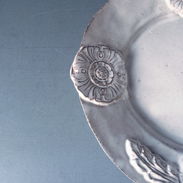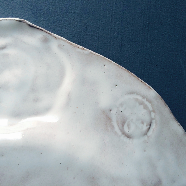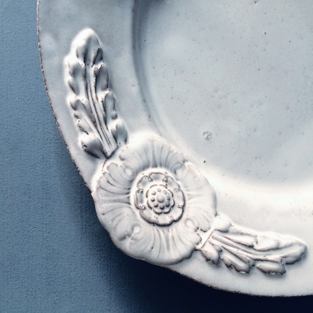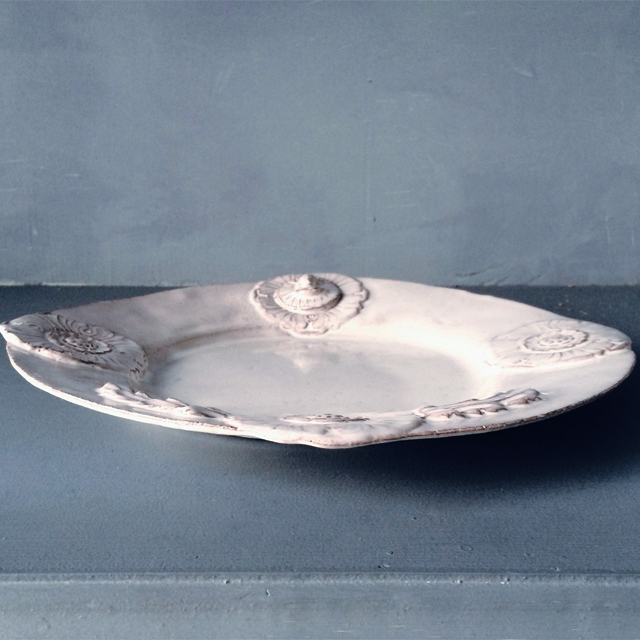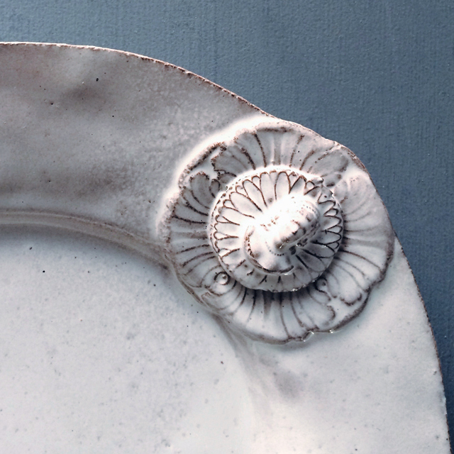 パリで採れる土。白い釉薬をかけその下に透ける様はこの土ならではの美しさです。