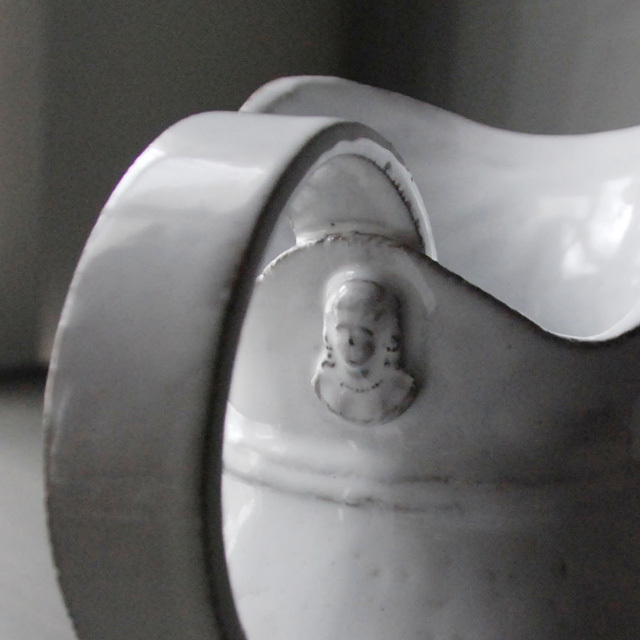 パリで採れる土。白い釉薬をかけその下に透ける様はこの土ならではの美しさです。