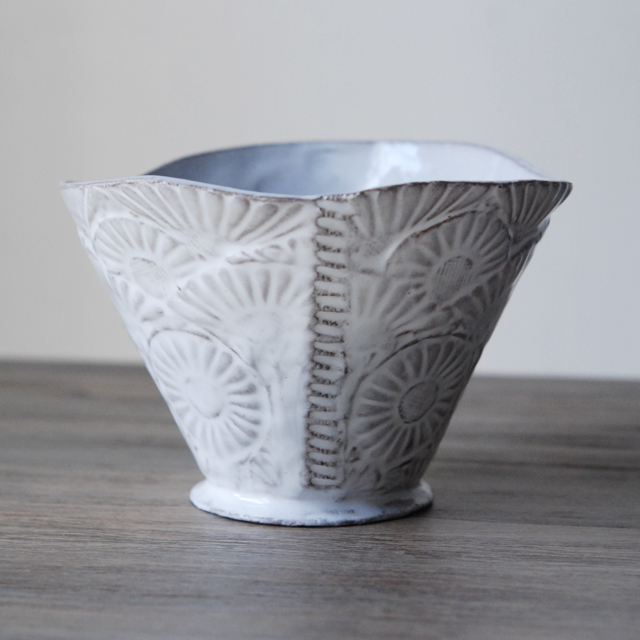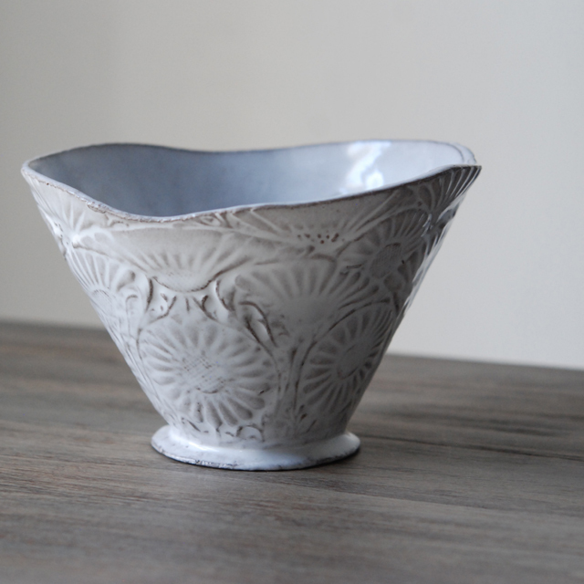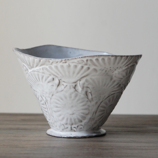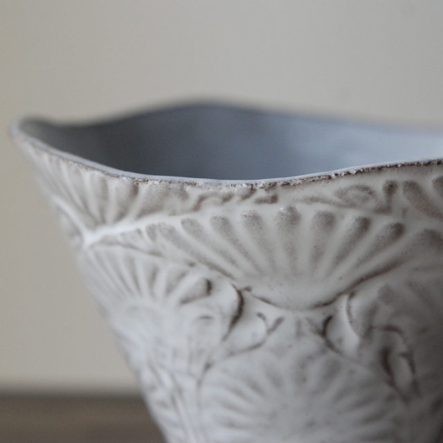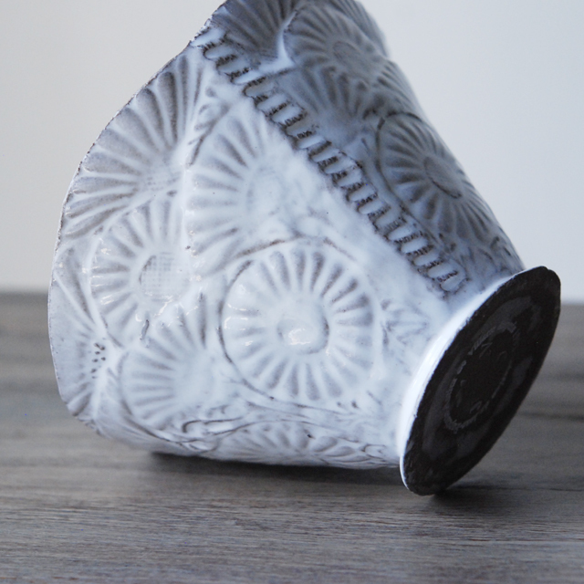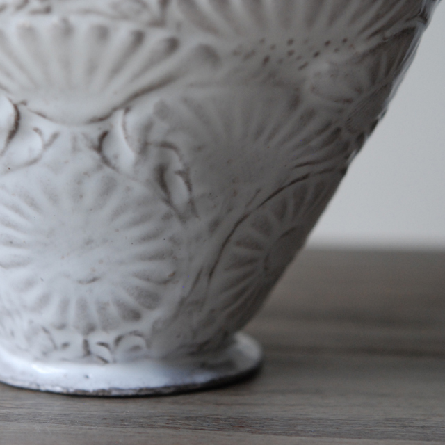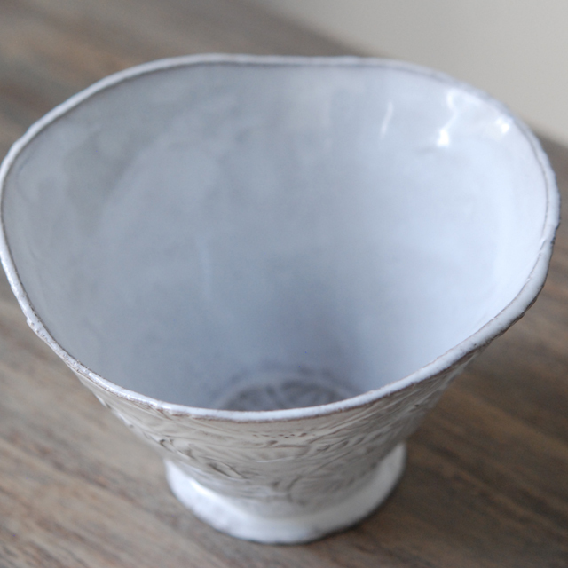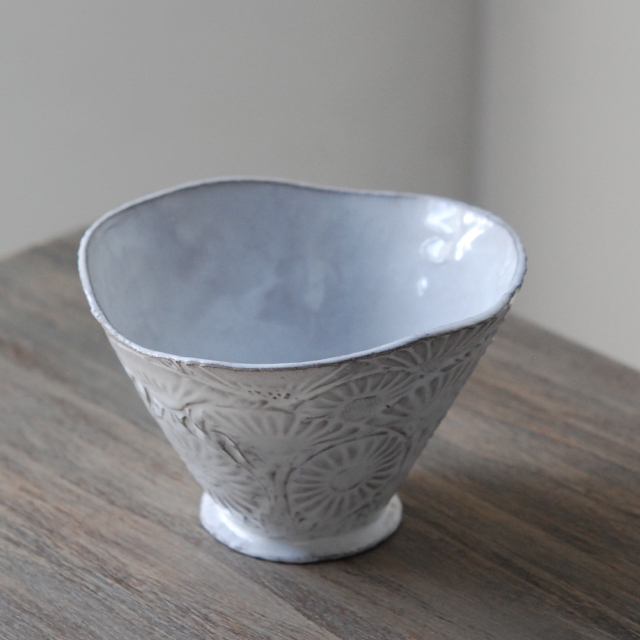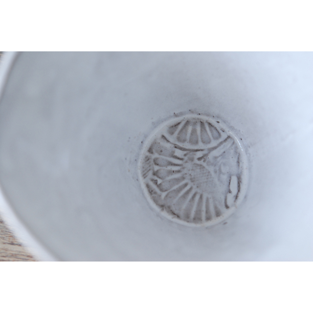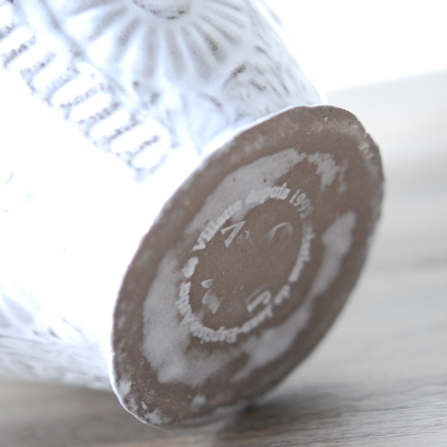 パリで採れる土。白い釉薬をかけその下に透ける様はこの土ならではの美しさです。