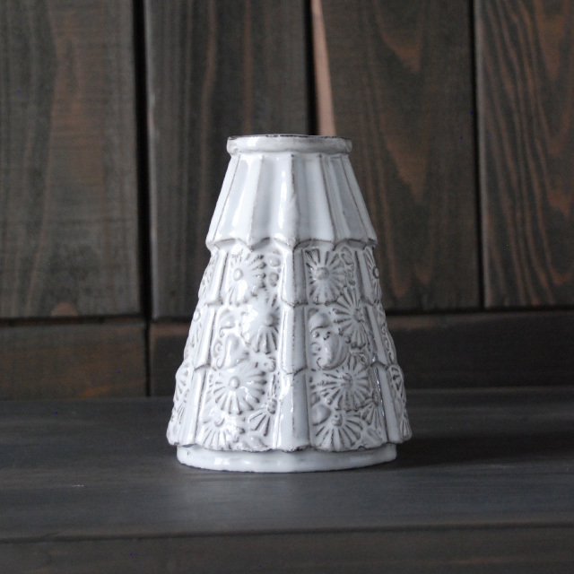 パリで採れる土。白い釉薬をかけその下に透ける様はこの土ならではの美しさです。
