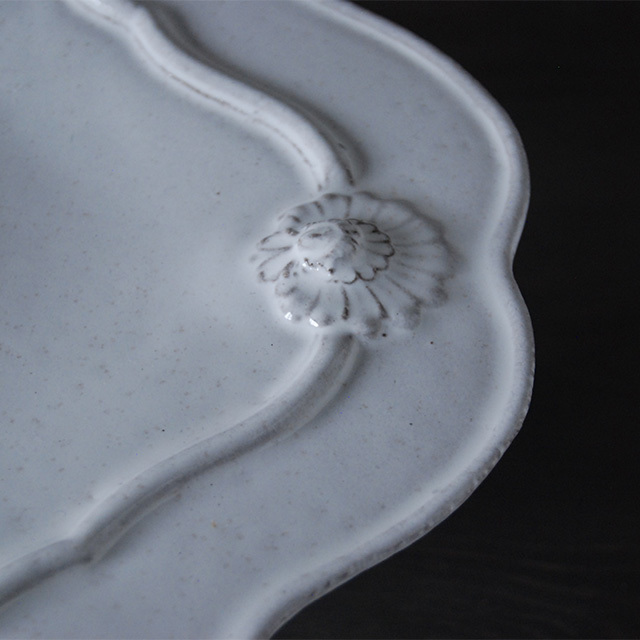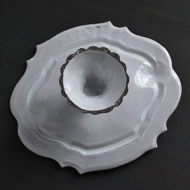 パリで採れる土。白い釉薬をかけその下に透ける様はこの土ならではの美しさです。