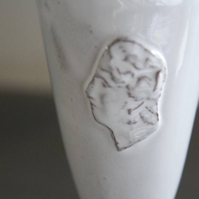 パリで採れる土。白い釉薬をかけその下に透ける様はこの土ならではの美しさです。