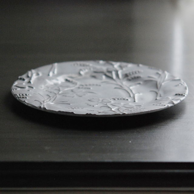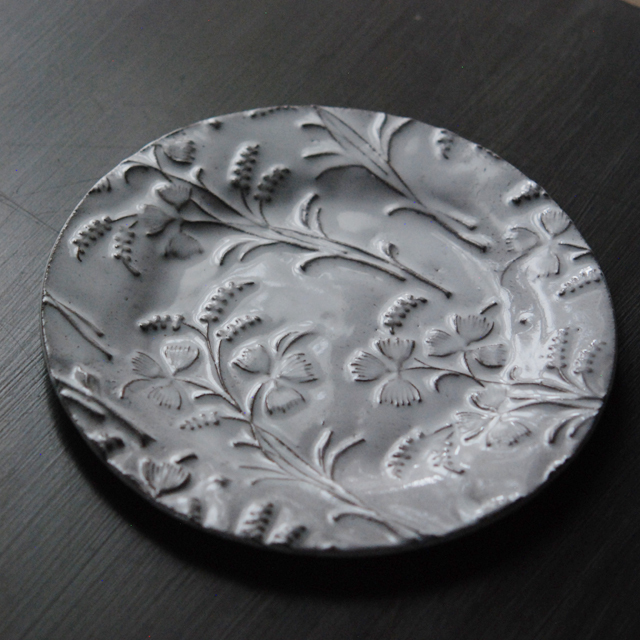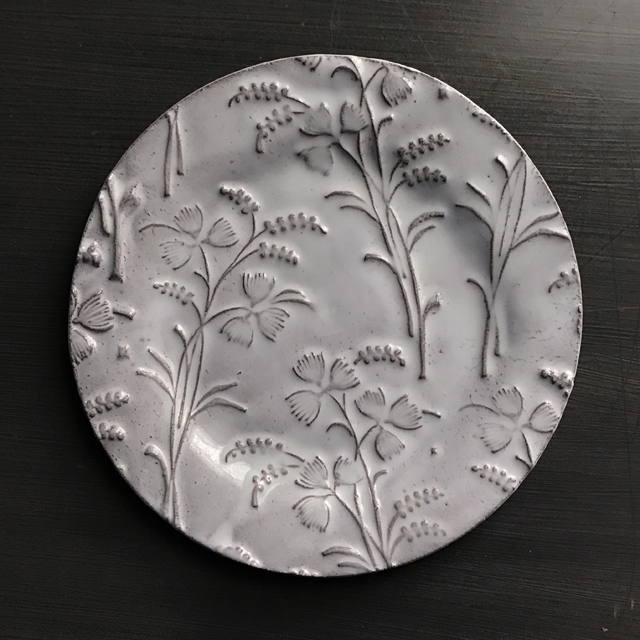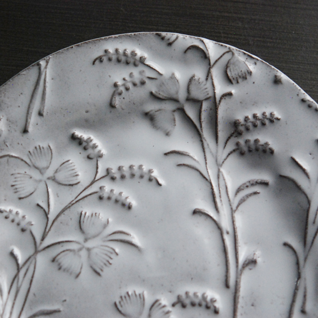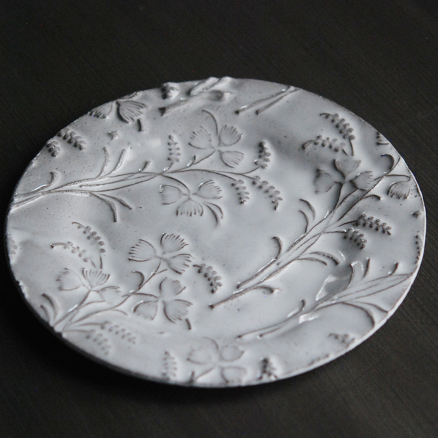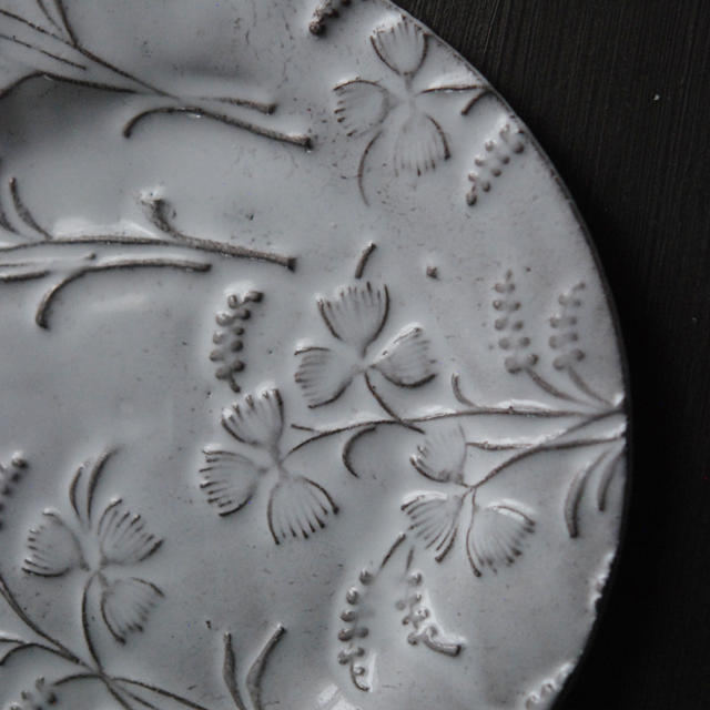 パリで採れる土。白い釉薬をかけその下に透ける様はこの土ならではの美しさです。