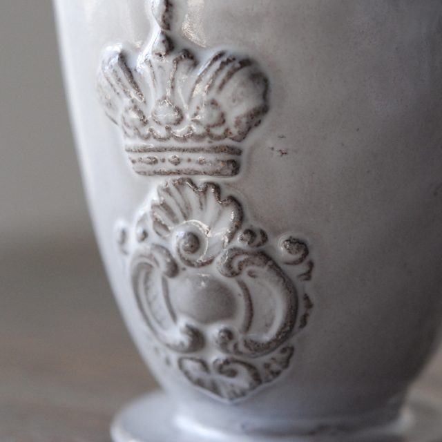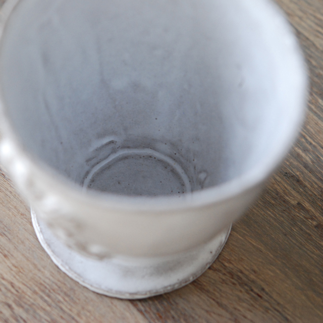 パリで採れる土。白い釉薬をかけその下に透ける様はこの土ならではの美しさです。