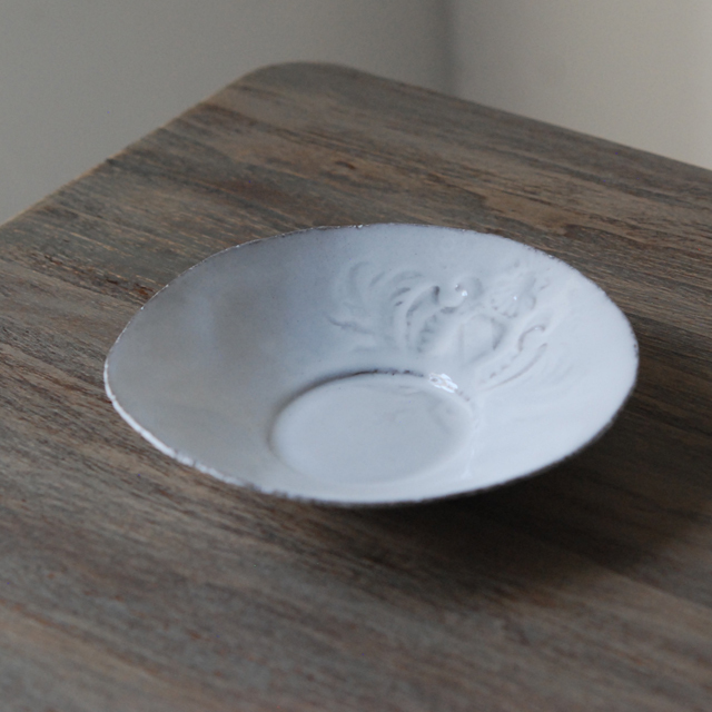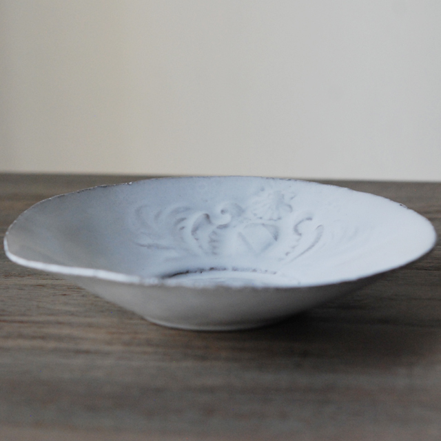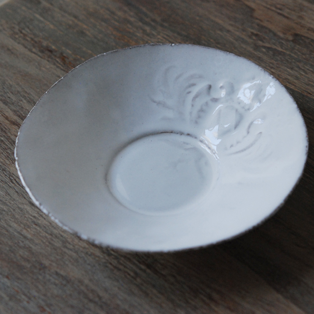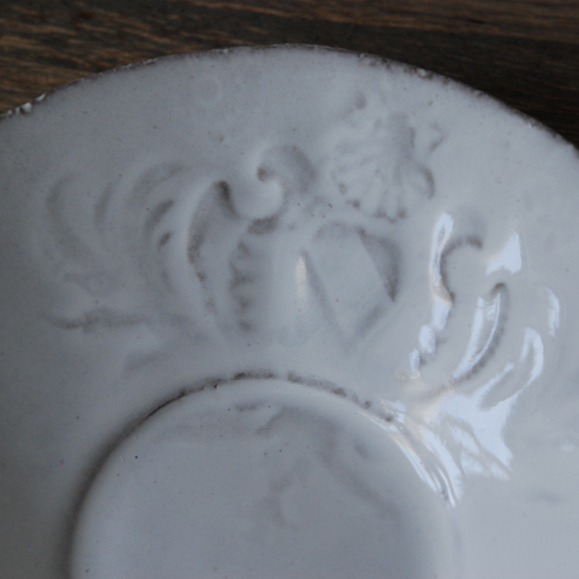 パリで採れる土。白い釉薬をかけその下に透ける様はこの土ならではの美しさです。