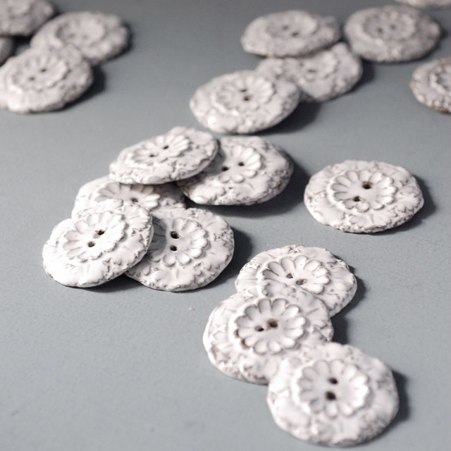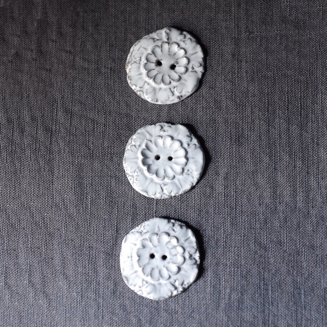 パリで採れる土。白い釉薬をかけその下に透ける様はこの土ならではの美しさです。
