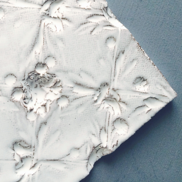 パリで採れる土。白い釉薬をかけその下に透ける様はこの土ならではの美しさです。