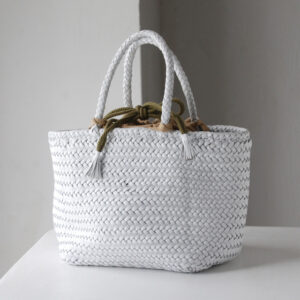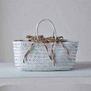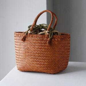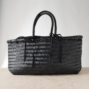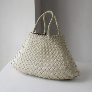 細いレザーをクロスに編みあげたレザーメッシュバッグは、熟練された職人の手仕事で1点1点作成されています。