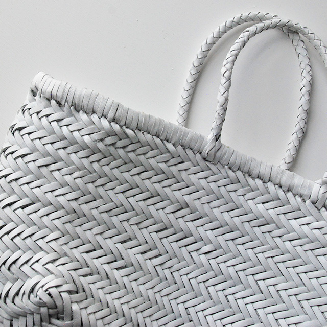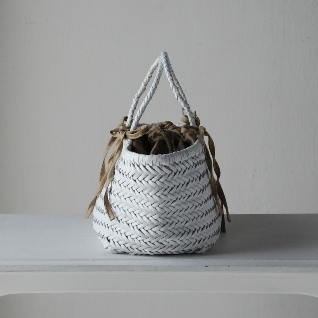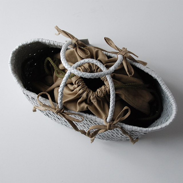 細いレザーをクロスに編みあげたレザーメッシュバッグは、熟練された職人の手仕事で1点1点作成されています。
