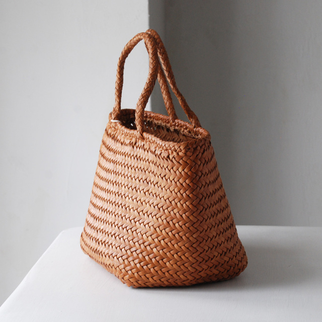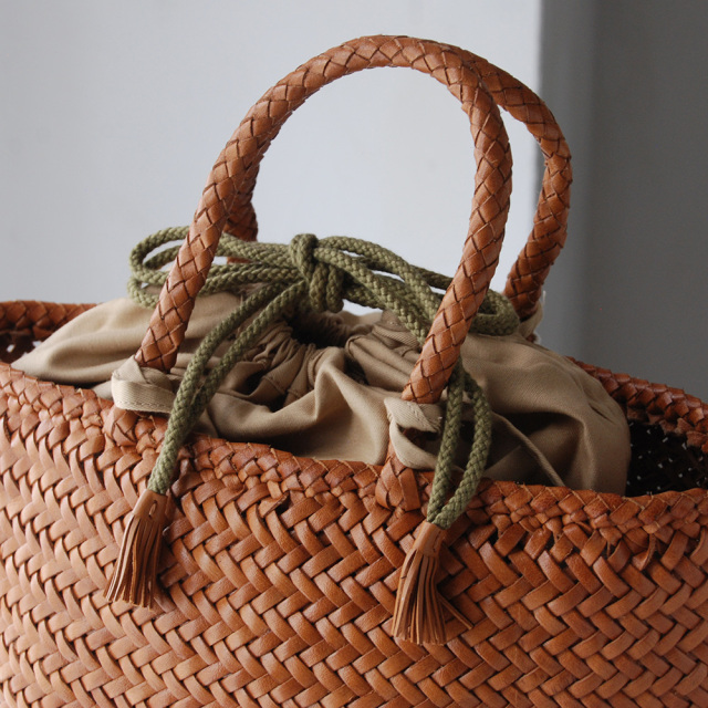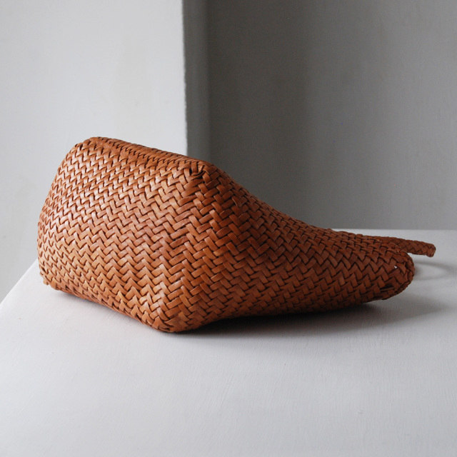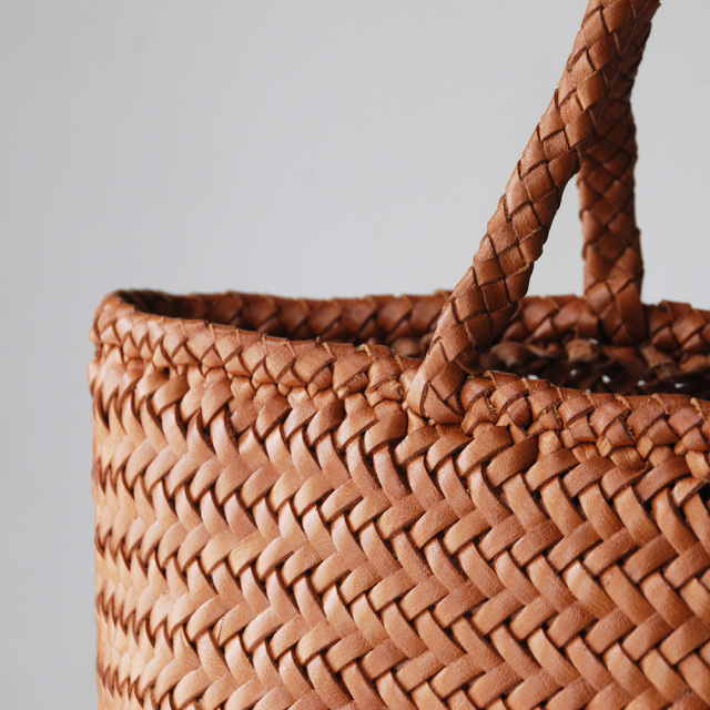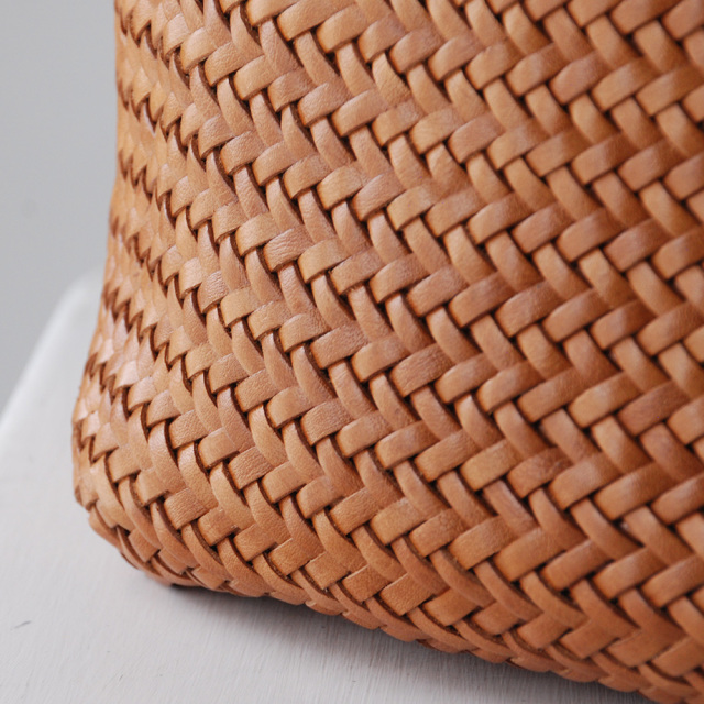 細いレザーをクロスに編みあげたレザーメッシュバッグは、熟練された職人の手仕事で1点1点作成されています。