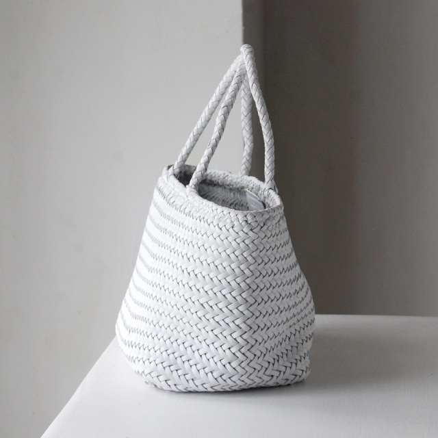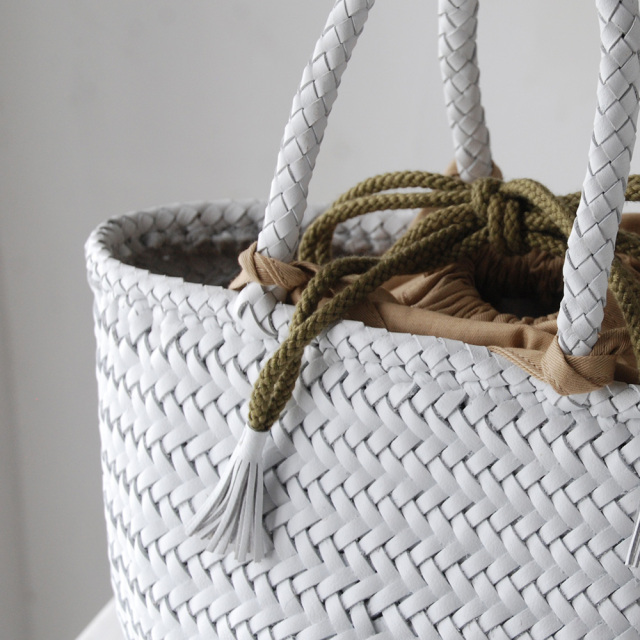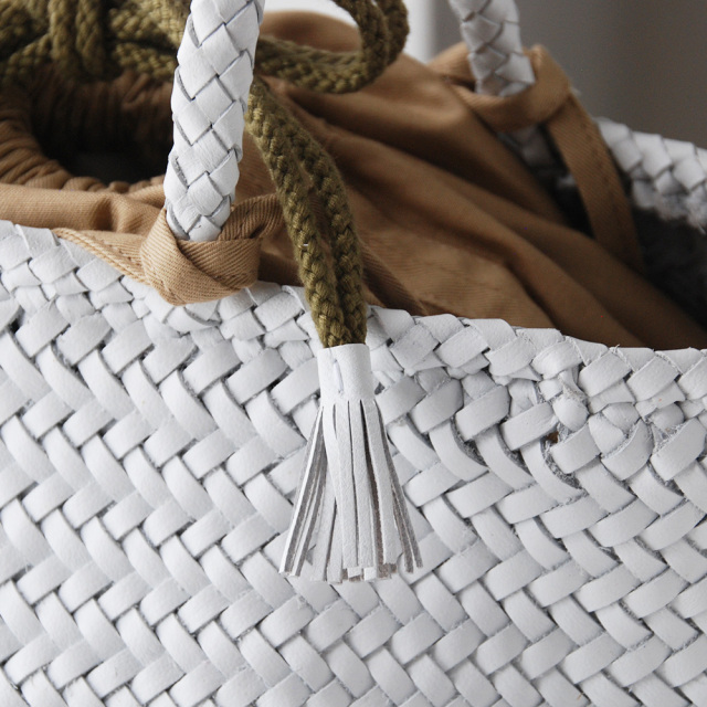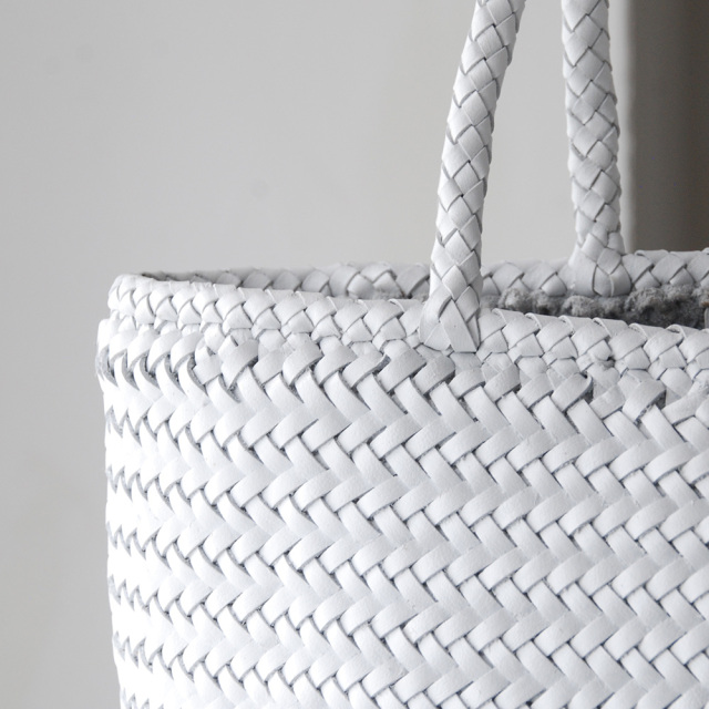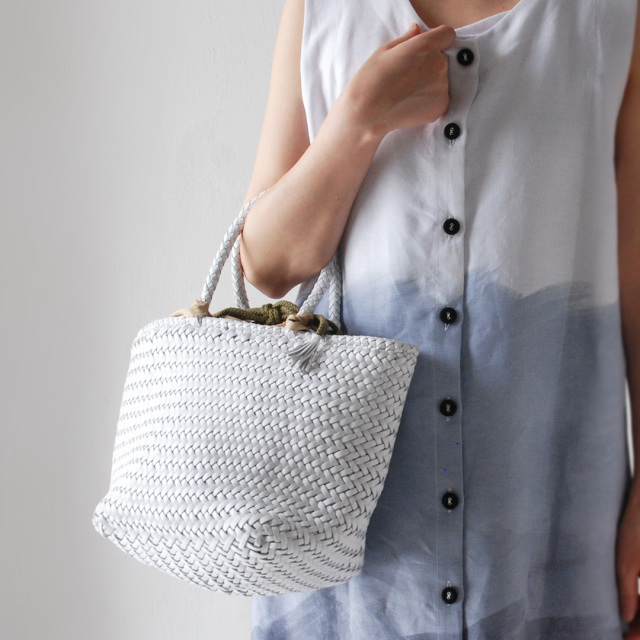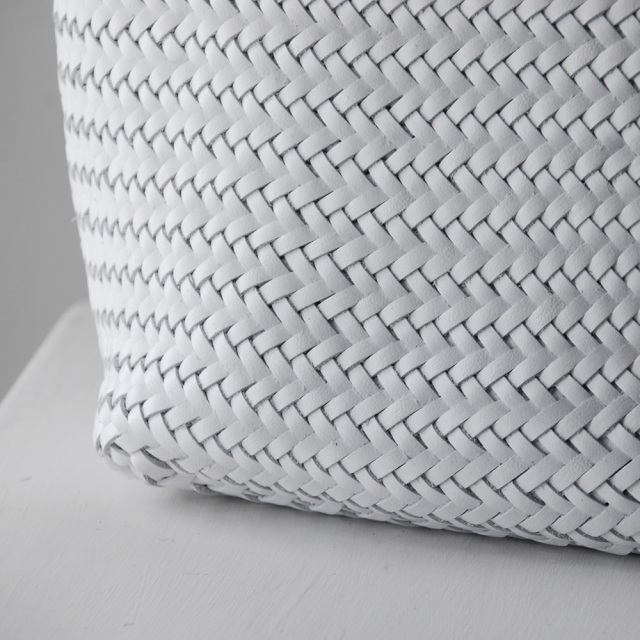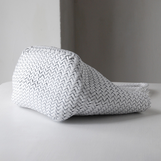 細いレザーをクロスに編みあげたレザーメッシュバッグは、熟練された職人の手仕事で1点1点作成されています。