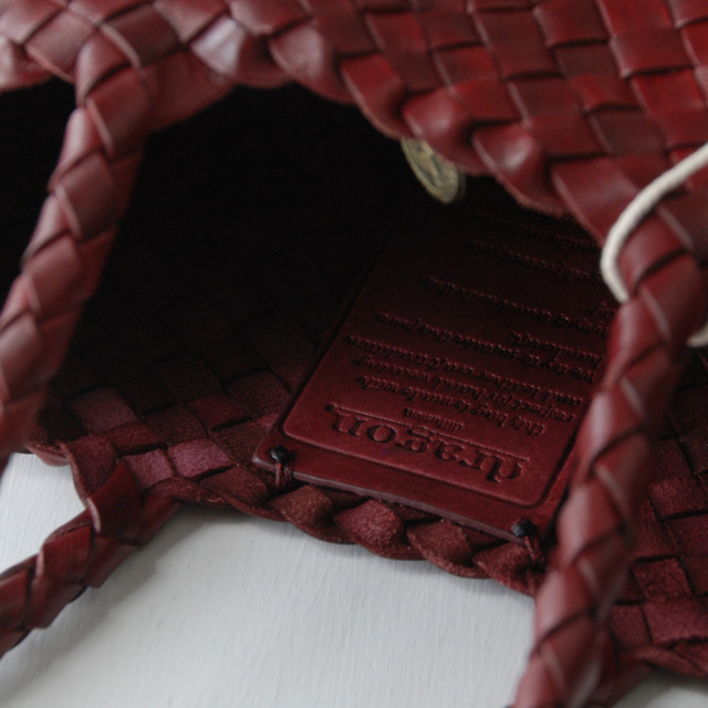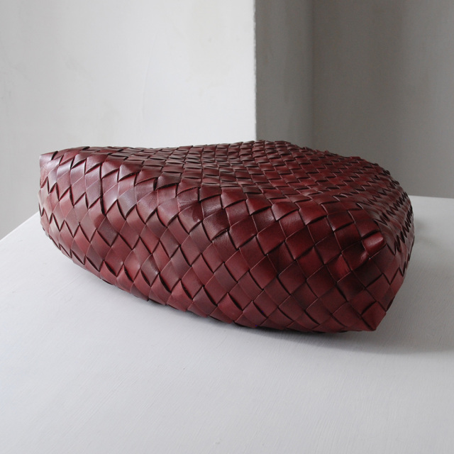 細いレザーをクロスに編みあげたレザーメッシュバッグは、熟練された職人の手仕事で1点1点作成されています。