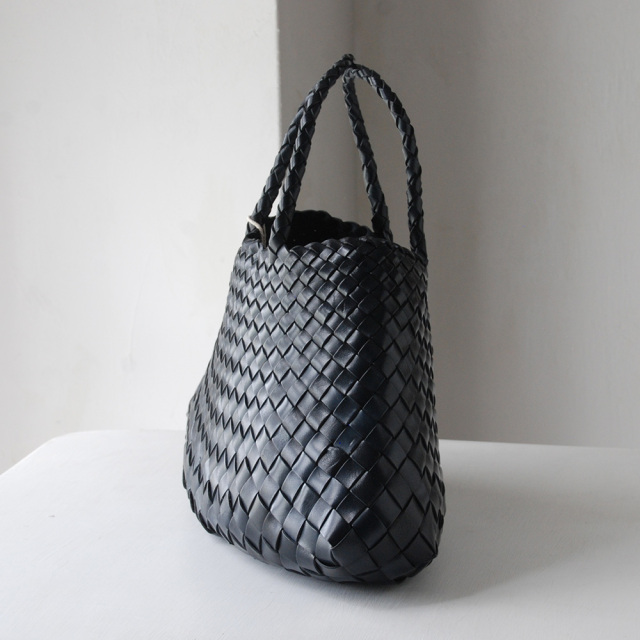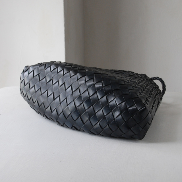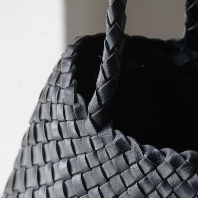 細いレザーをクロスに編みあげたレザーメッシュバッグは、熟練された職人の手仕事で1点1点作成されています。
