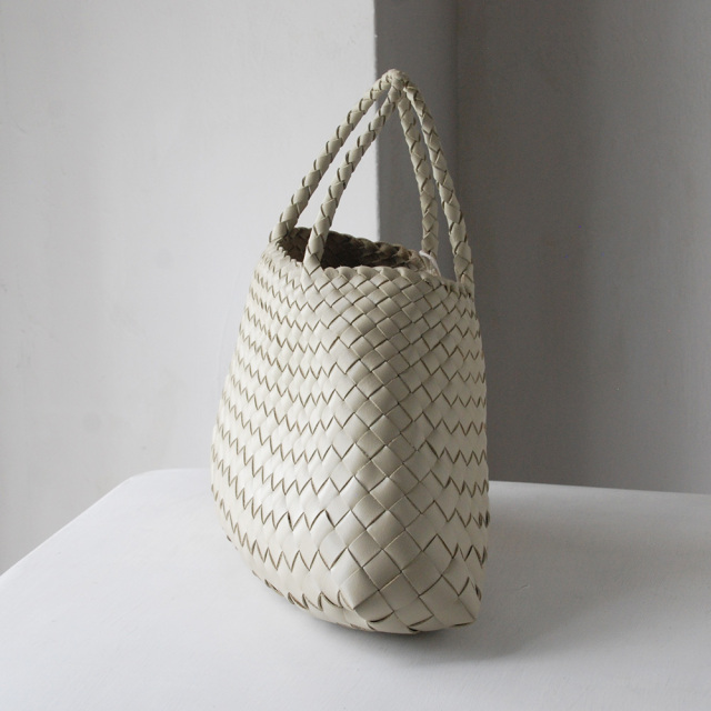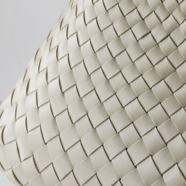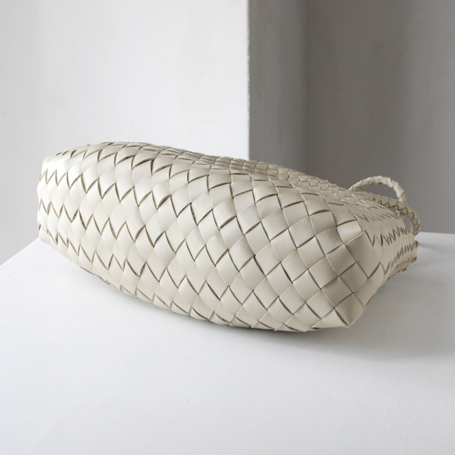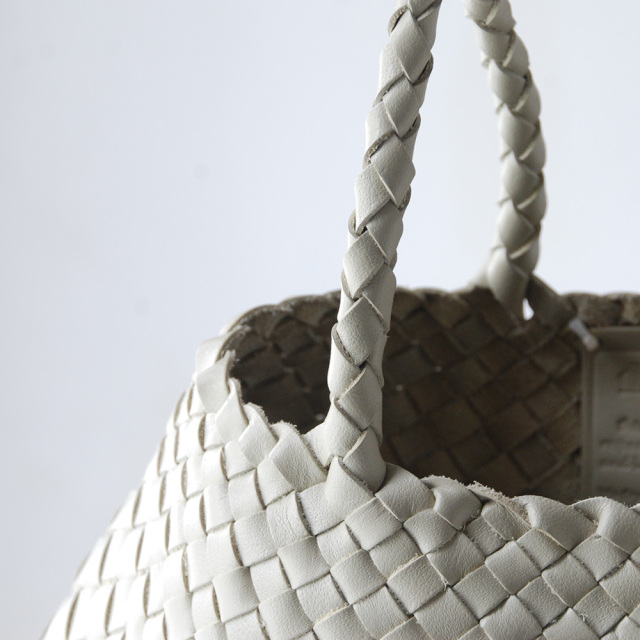 細いレザーをクロスに編みあげたレザーメッシュバッグは、熟練された職人の手仕事で1点1点作成されています。