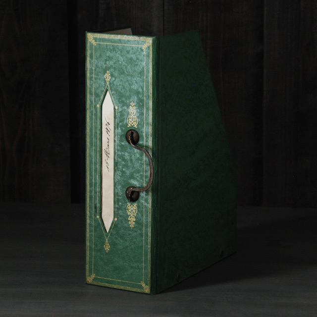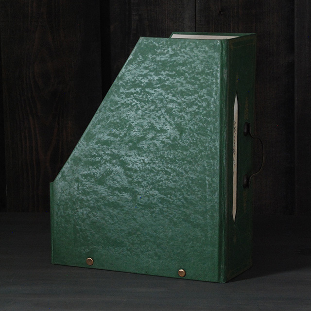 昔の書類整理棚を思わせる美しいファイルボックスです。