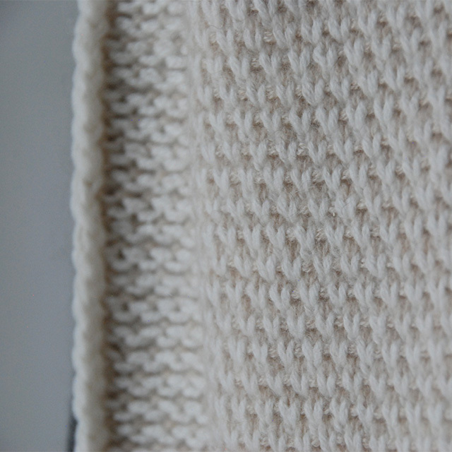 形はシンプルなのに、カシミアの風合い、絶妙なカラー合わせが独特な雰囲気を醸し出します。